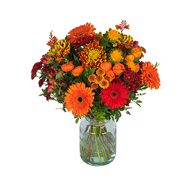 Pak uit met dit luxe herfstboeket. Dit rijkelijk gevulde boeket brengt kleur en warmte in elke huiskamer. Verras de ontvanger vandaag nog met dit prachtige boeket!