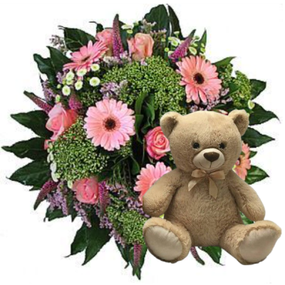 Speciaal voor het pasgeboren meisje en haar ouders maken wij een stijlvol boeket met seizoensbloemen in roze tinten. Let op: De bloemen in de afbeelding zijn slechts voorbeelden van seizoensbloemen die mogelijk gebruikt kunnen worden. Hetzelfde geldt voor de knuffel die erbij geleverd wordt.